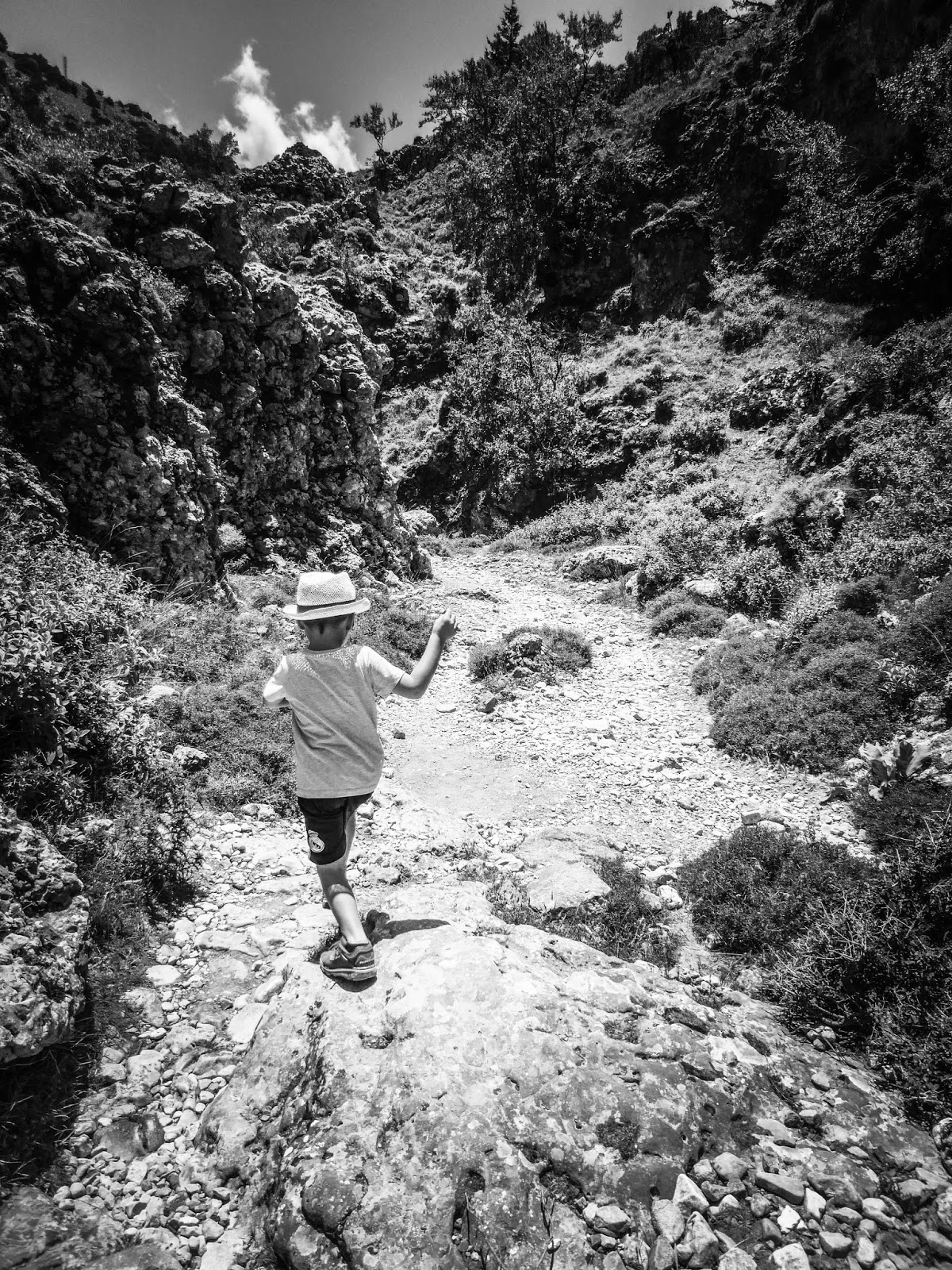the rocky path. The gentle descent, gentle breeze and generosity of shade from